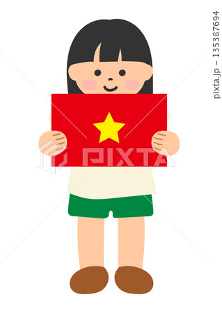 ベトナムの国旗を両手で持つ子ども