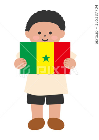 セネガルの国旗を両手で持つ子ども
