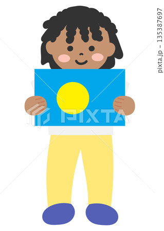 パラオの国旗を両手で持つ子ども