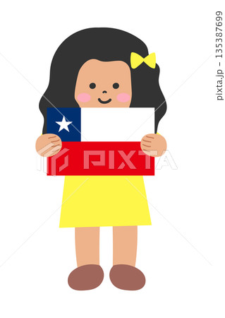 チリの国旗を両手で持つ子ども