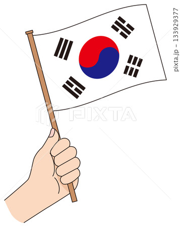 シンプルな国旗を持つ手 韓国