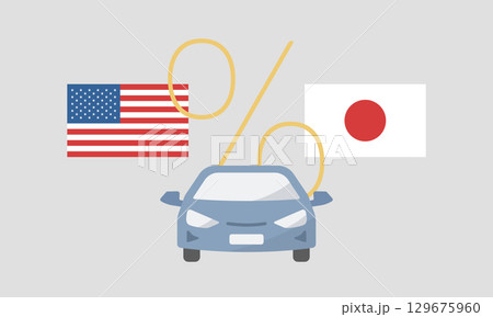 日米自動車関税のベクターイラスト素材(貿易・税率・経済)