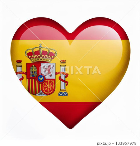Spain civil flag and ensign heart shape. Spain flag background, icon heart shaped. Flag of Spain badge, sticker.