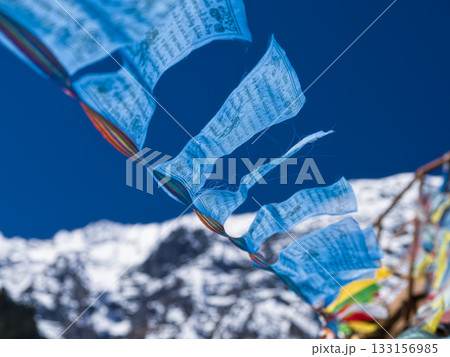 中国雲南省・梅里雪山に靡くタルチョ / Meili Snow Mountains, China