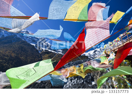 中国雲南省・風に靡くタルチョと梅里雪山・明永氷河 / Meili Snow Mountains
