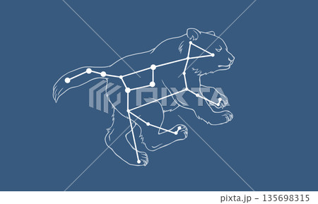 ネイビー色の背景に浮かぶおおぐま座の星座線のイラスト(白線)