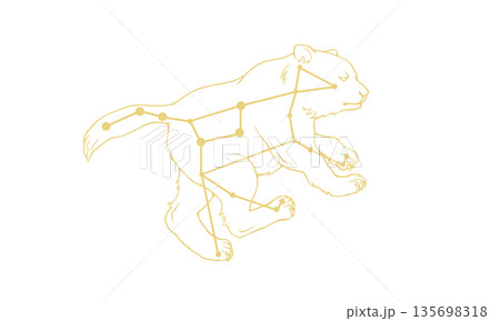 おおぐま座のイラスト(ゴールド色で熊の絵と星座線、線のみ)