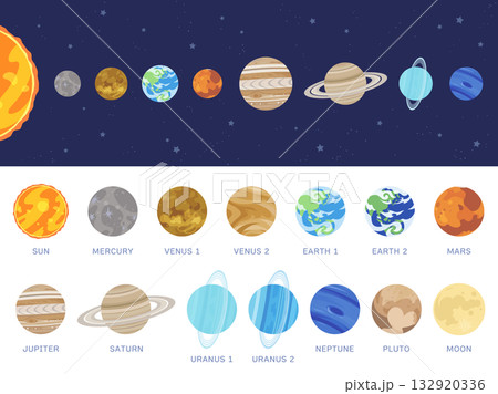 太陽系惑星のイラストセット 挿絵 背景イラスト 太陽 月 地球 惑星