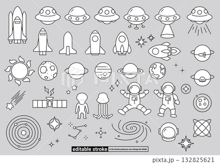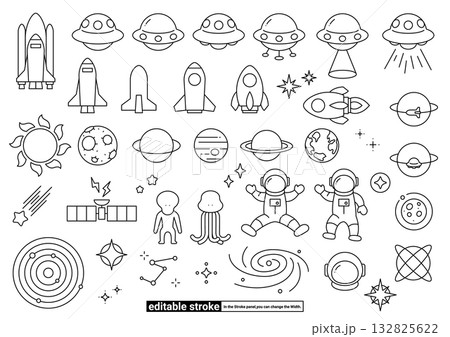 宇宙・天文 アイコンセット(編集可能なストローク)