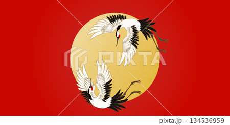 お月見フレーム枠背景イラスト シンプル和柄 月と雲 麻の葉模様 ベクター