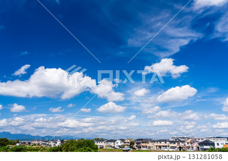 【空素材】秋の青空に浮かぶ巻雲【山梨県】