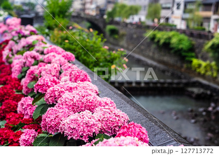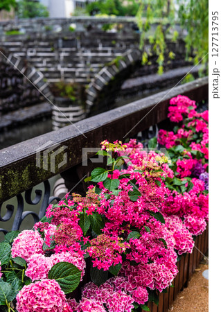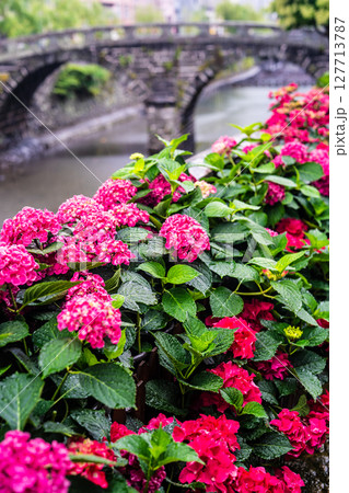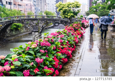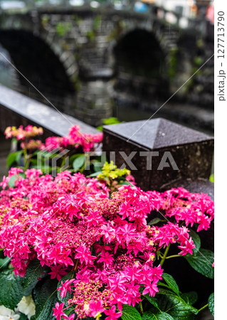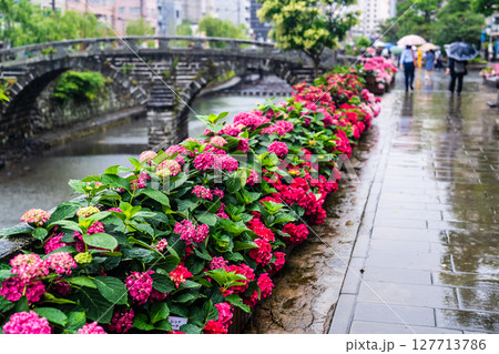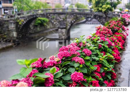 雨の日の眼鏡橋のアジサイ【長崎市】