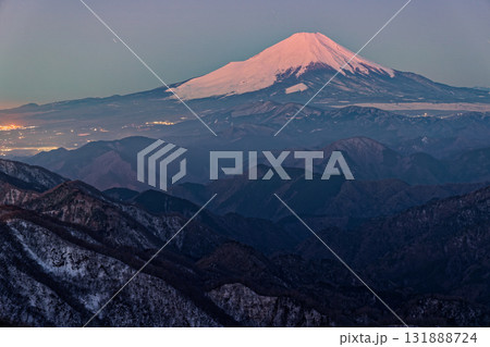 丹沢・塔ノ岳山頂から見る黎明の富士山