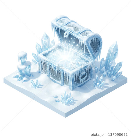 雪原に輝く宝箱のアイソメトリックアイコン