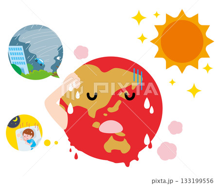 SDGs13 地球温暖化 熱すぎて溶けている地球のイラスト