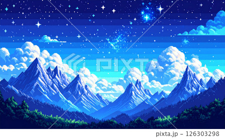 ピクセルアート風、ファンタジーゲームの世界のような、キラキラした背景