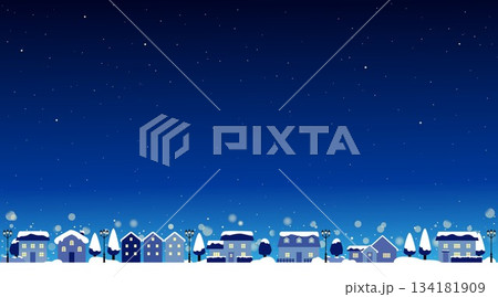 冬の夜空と雪原の幻想的な風景背景 青く広がる静寂の世界(冬・雪・自然・背景素材)
