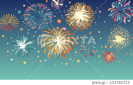夏祭り カラフルな打ち上げ花火の壁紙・背景素材