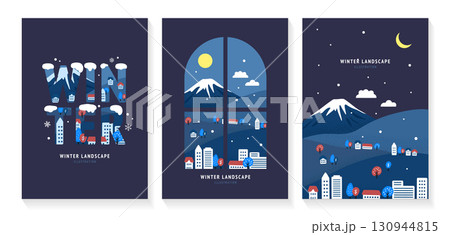 シンプルタッチの冬の夜の風景のイラスト