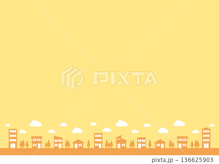 秋の黄昏時街並み背景、横、イラスト、かわいい
