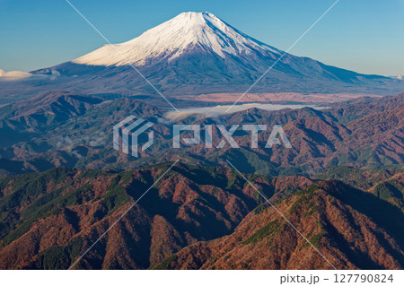 《山梨県》三ツ峠山から望む、冠雪した富士山