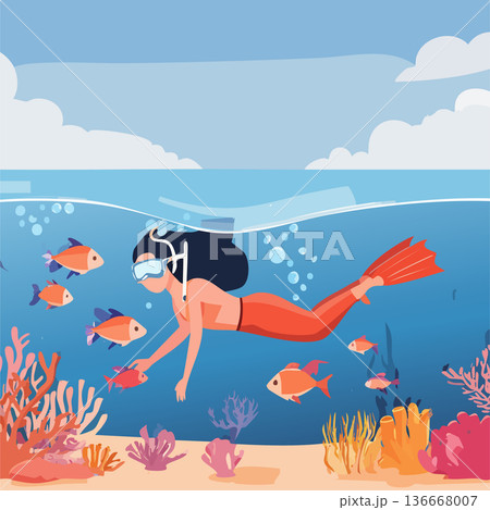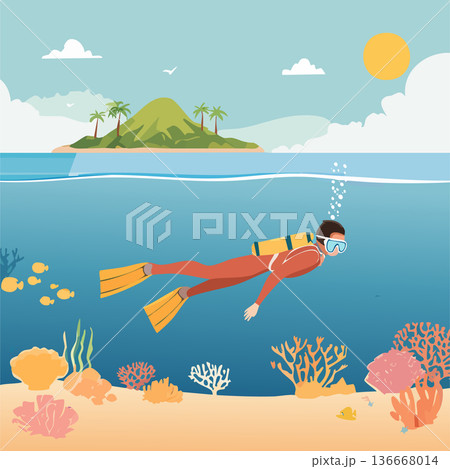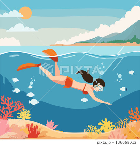 夏の海でダイビングをするベクターイラスト