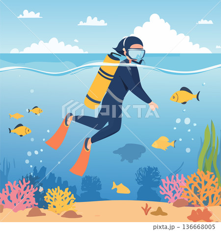 Vector Illustration of Man Scuba Diving Underwater
