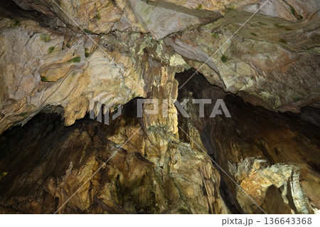 観光名所岐阜県の飛騨大鍾乳洞の岩石の風景