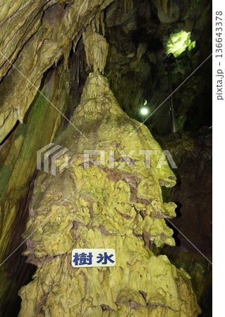 山口県美祢市 秋芳洞の名所 巨大な鍾乳石「洞内富士」