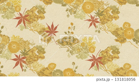 紅葉と菊の伝統的な和柄シームレスパターン