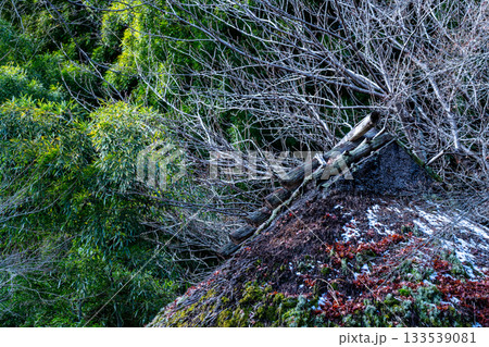 冬の化野念仏寺 竹林と残雪の茅葺き屋根 京都府京都市右京区