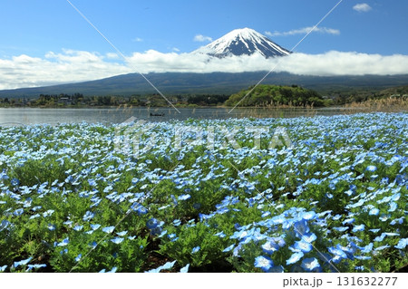 ネモフィラ咲く河口湖大石公園と富士山 山梨県河口湖町