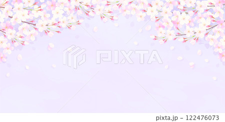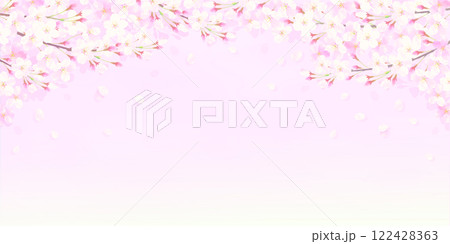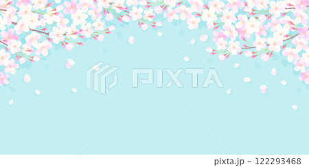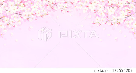 満開の桜と桜吹雪が舞う背景イラスト