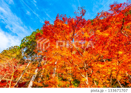 秋晴れに映える鮮やかに色づいた紅葉