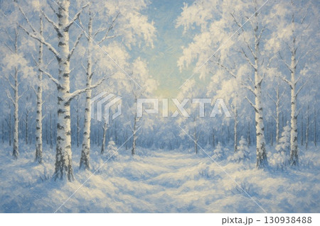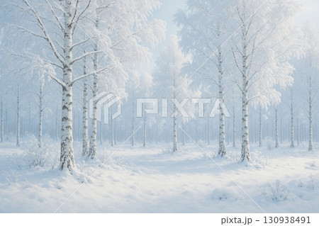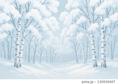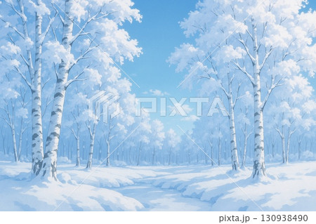 冬 白樺林 雪景色 アニメ調