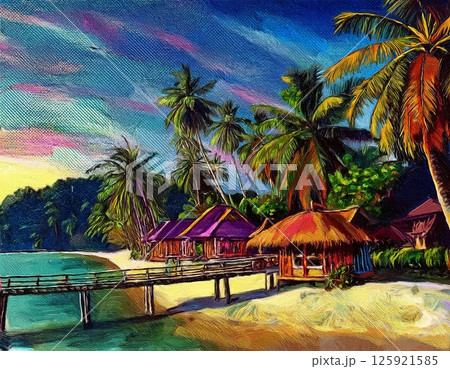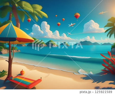 南国のビーチリゾート イラスト