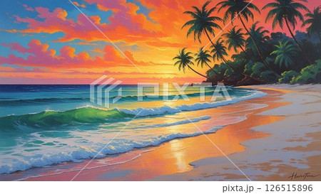 楽園の輝き:息をのむような熱帯の夕日 AI画像