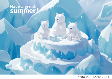 夏の涼しさを届けるシロクマとペンギンの暑中お見舞いイラスト