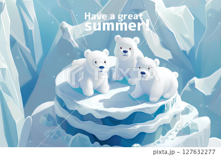 氷山のケーキとシロクマくん-3(文字入り)暑中お見舞い