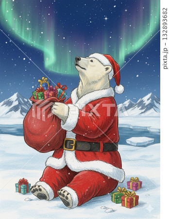 クリスマスプレゼントを届けるホワイトベアサンタクロース