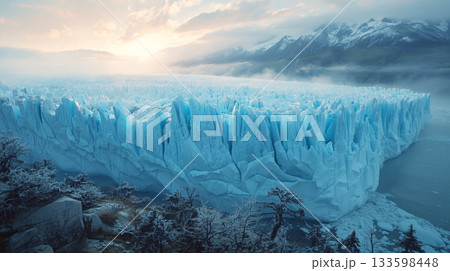 夕日に染まる氷河