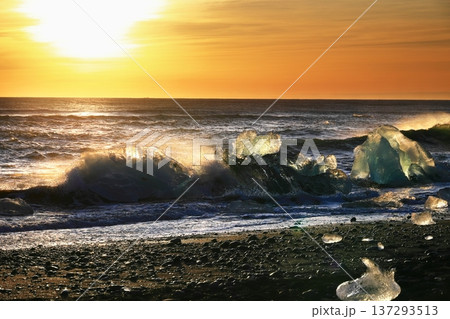 ゲーム背景 壮大な氷河から生まれた美しい透明度の高い湖