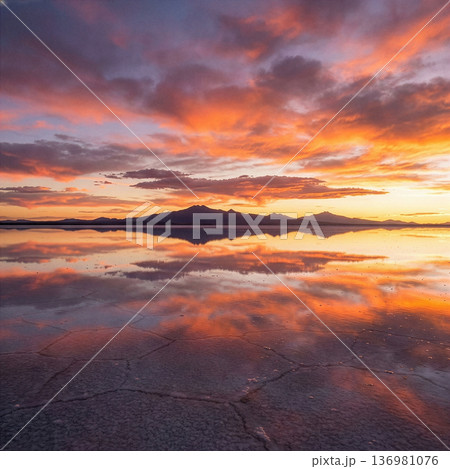 朝焼けに染まるウユニ塩湖 イメージ