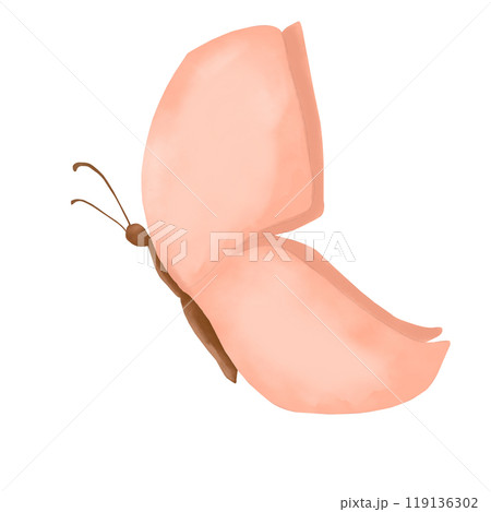 Butterfly with peach color wings watercolor digital illustration children's holiday for printing and web