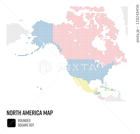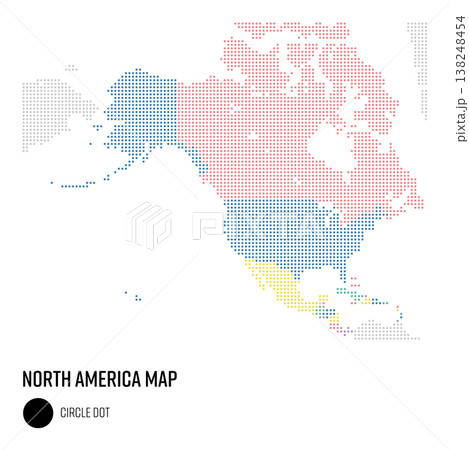 世界地図ドット粗め 北アメリカ・中米・カリブ海地域 国別にグループ