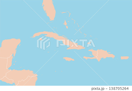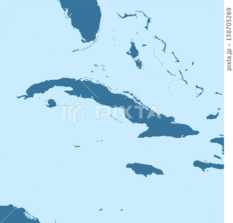キューバとカリブ海諸国 マップイラスト (白地図)