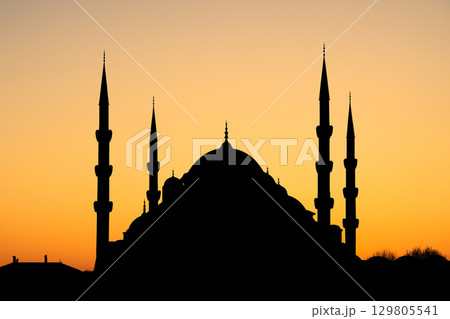 夕暮れのブルーモスクのシルエット