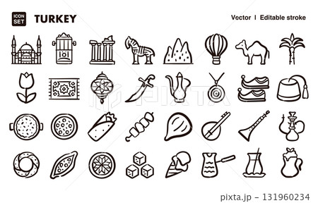 トルコのアイコンイラストセット EPS版は線の太さ等編集可能