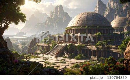 自然と超古代文明の遺跡がある風景