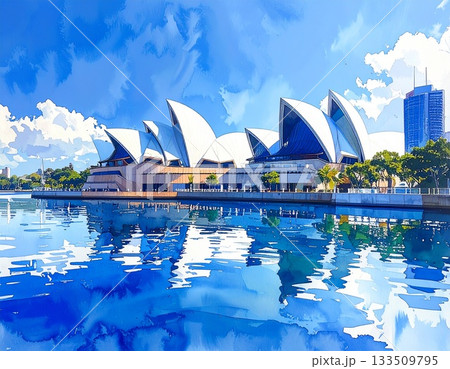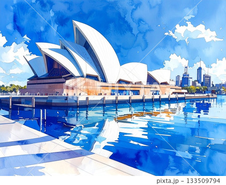 水彩画背景_世界旅行_オーストラリア_オペラハウス_02